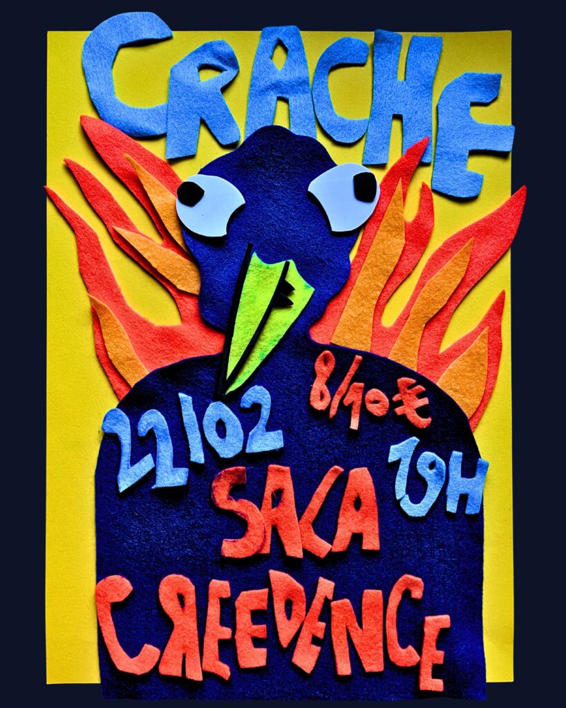 CRACHE es una colisión de ruido y emoción, una mezcla furiosa de poesía y melodía. Sobre el escenario, el cuarteto transforma cada actuación en una celebración frenética, impulsando los cuerpos a una extraña danza donde vibraciones sintéticas se mezclan con disonancias eléctricas. Entre la tensión y los estallidos de sensibilidad, la melancolía se despliega al ritmo frenético de canciones embriagantes e ingenuas. De la confusión, emerge CRACHE, vital y ruidoso.